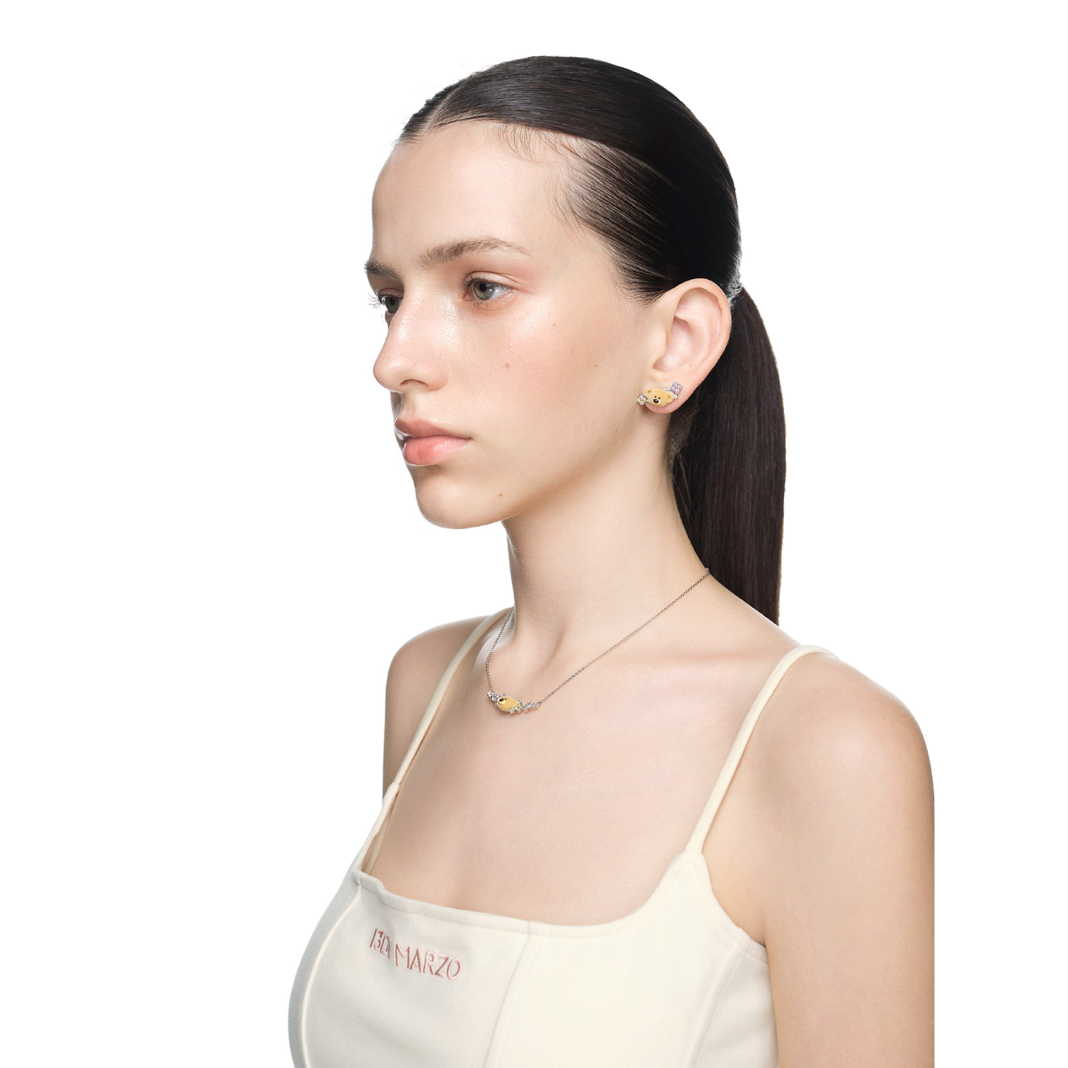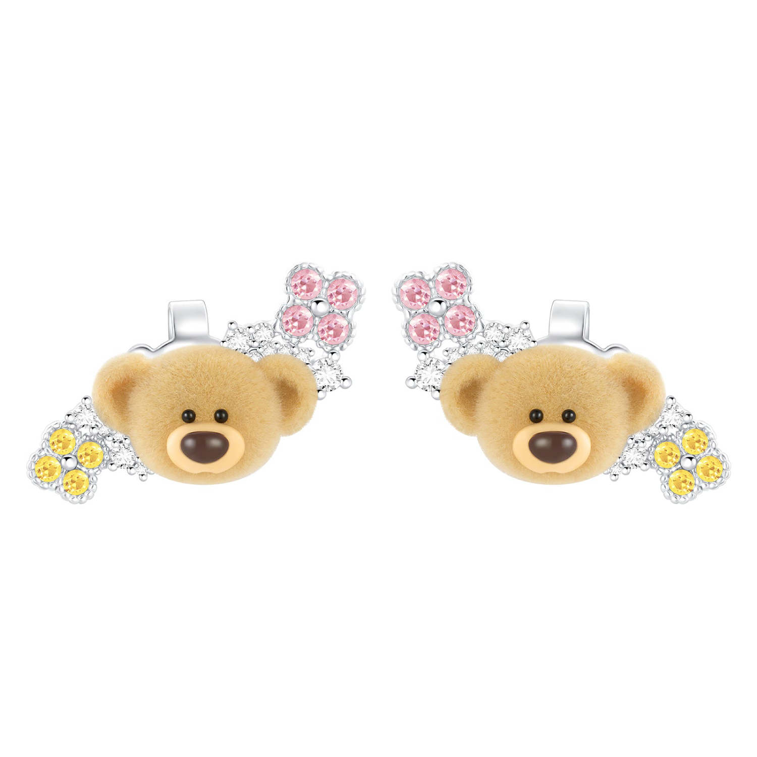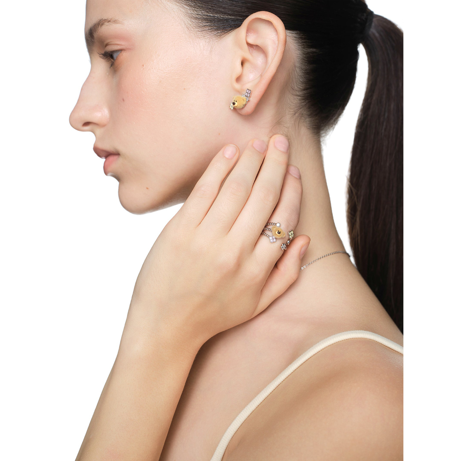 Inspired by Monet’s garden, this design captures the romantic interplay of Impressionist light and shadow at the ear. A softly flocked teddy bear head stands at the center, charming and full of character, while surrounding floral motifs set with gradient-hued crystals sway gently—like blossoms kissed by morning dew, refracting a dreamlike glow.
