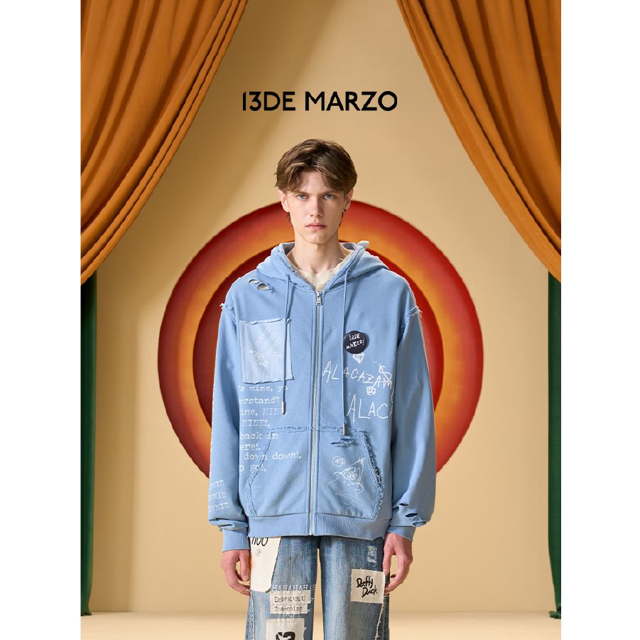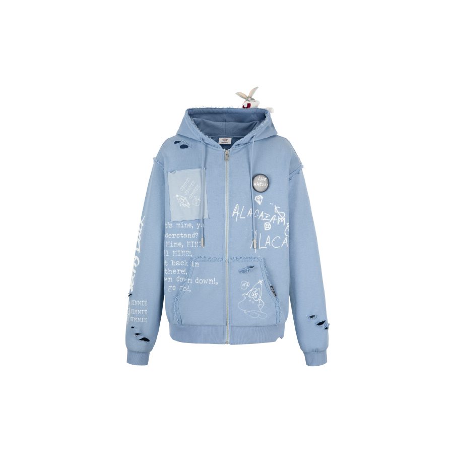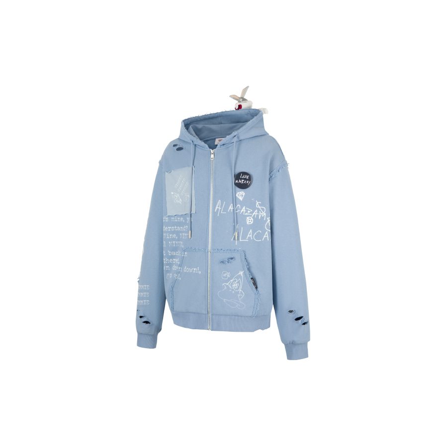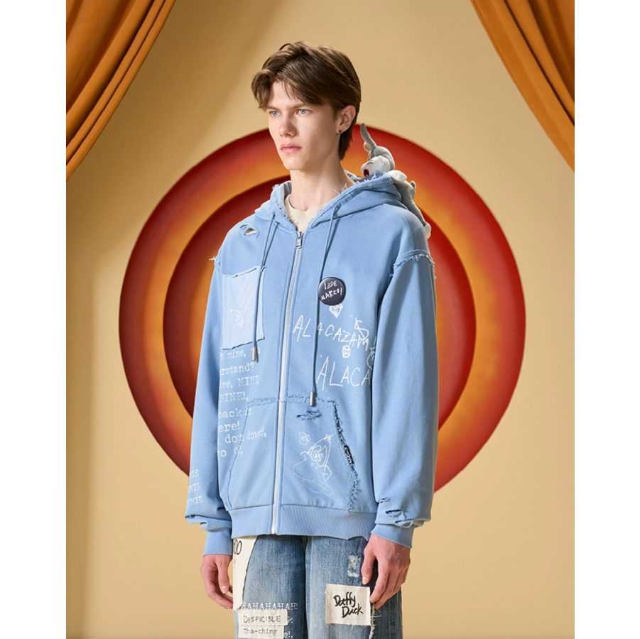 13De Marzo X Looney Tunes Daffy Duck Sketch Zip Hoodie Blue