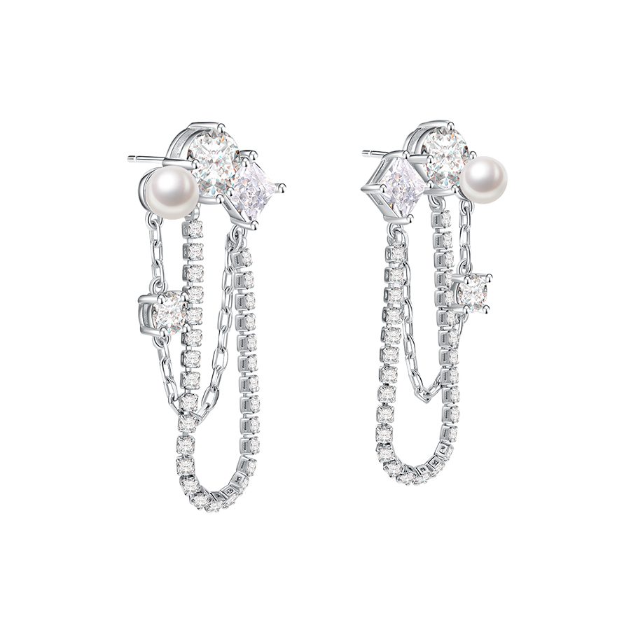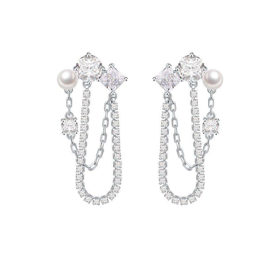Materials: Rhodium plated copper, Cubic Zirconia, Pearl Bead, 925 Silver Pin