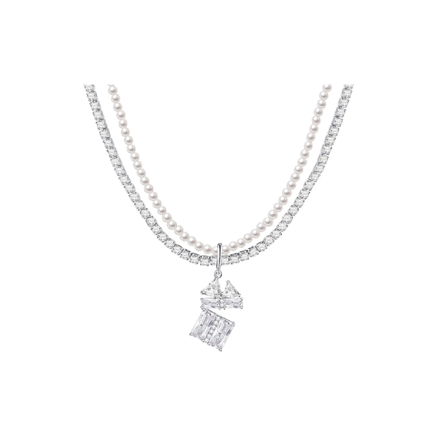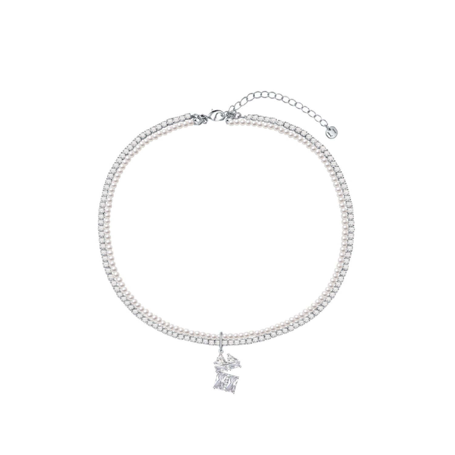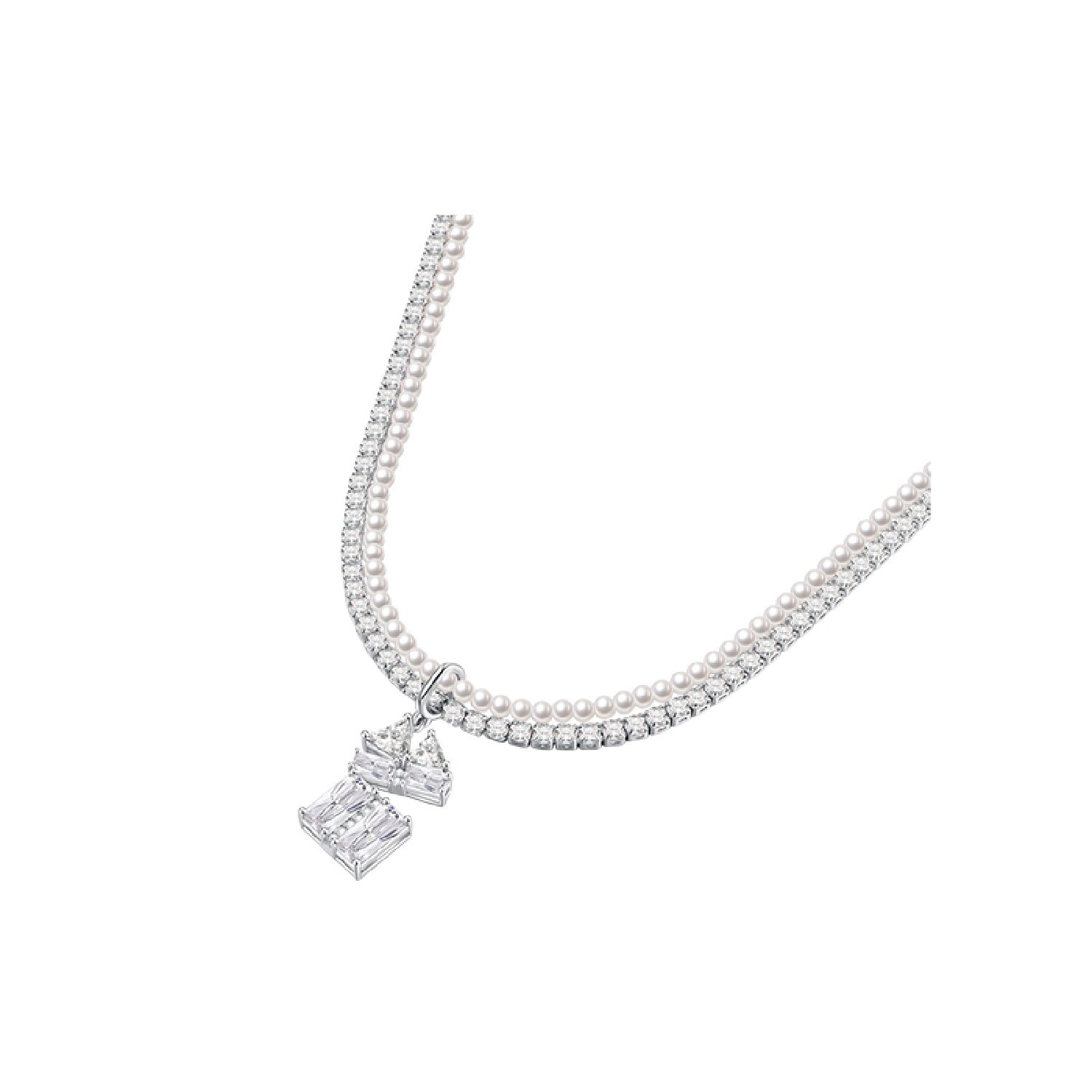 Materials: Rhodium plated copper, Cubic Zirconia, Pearl Bead