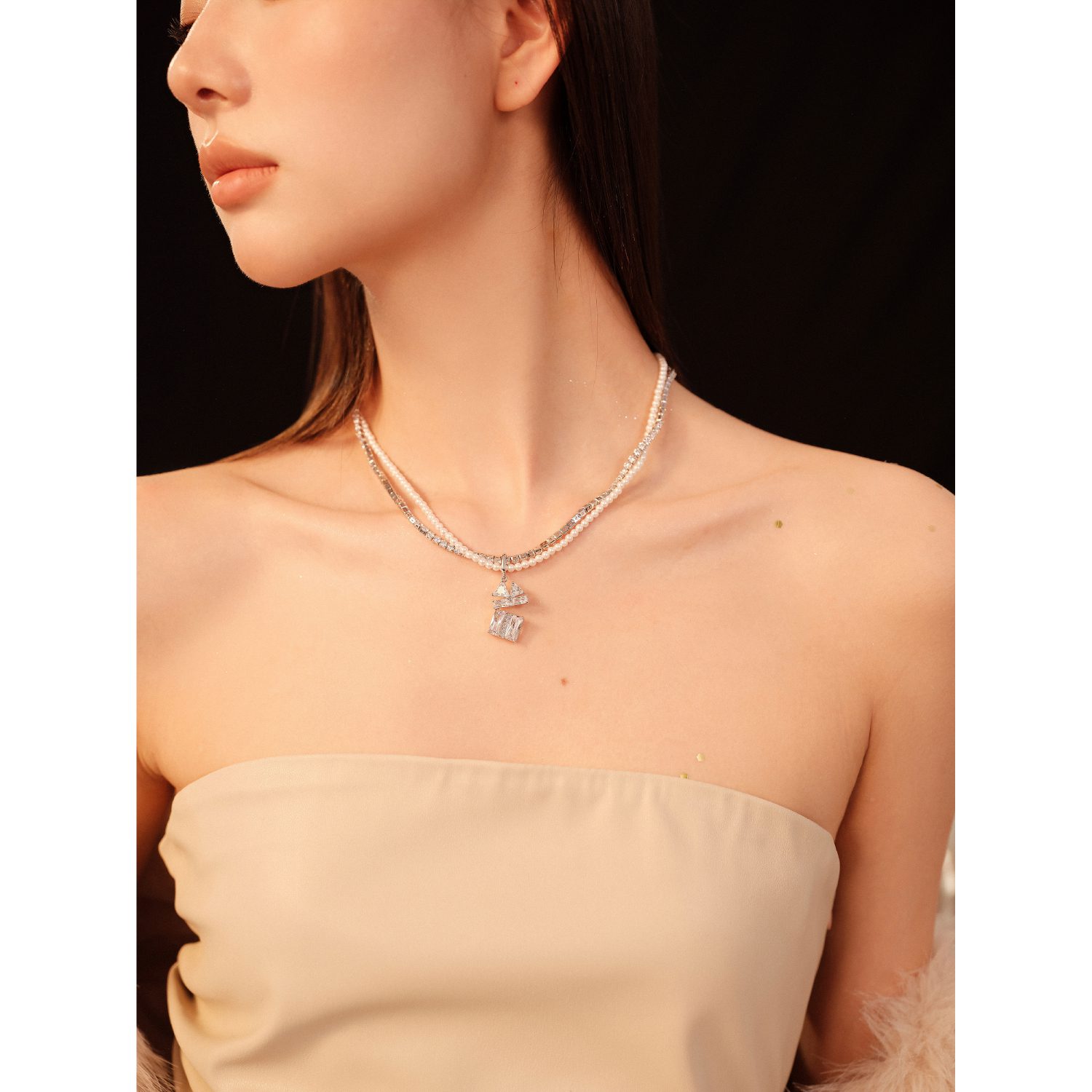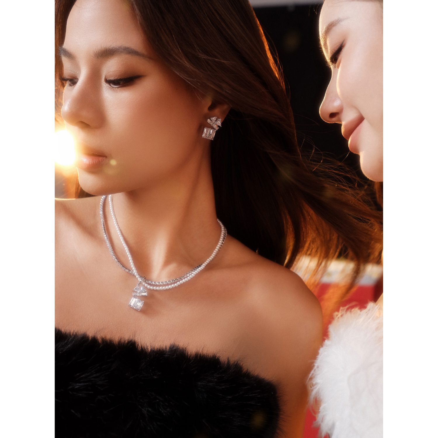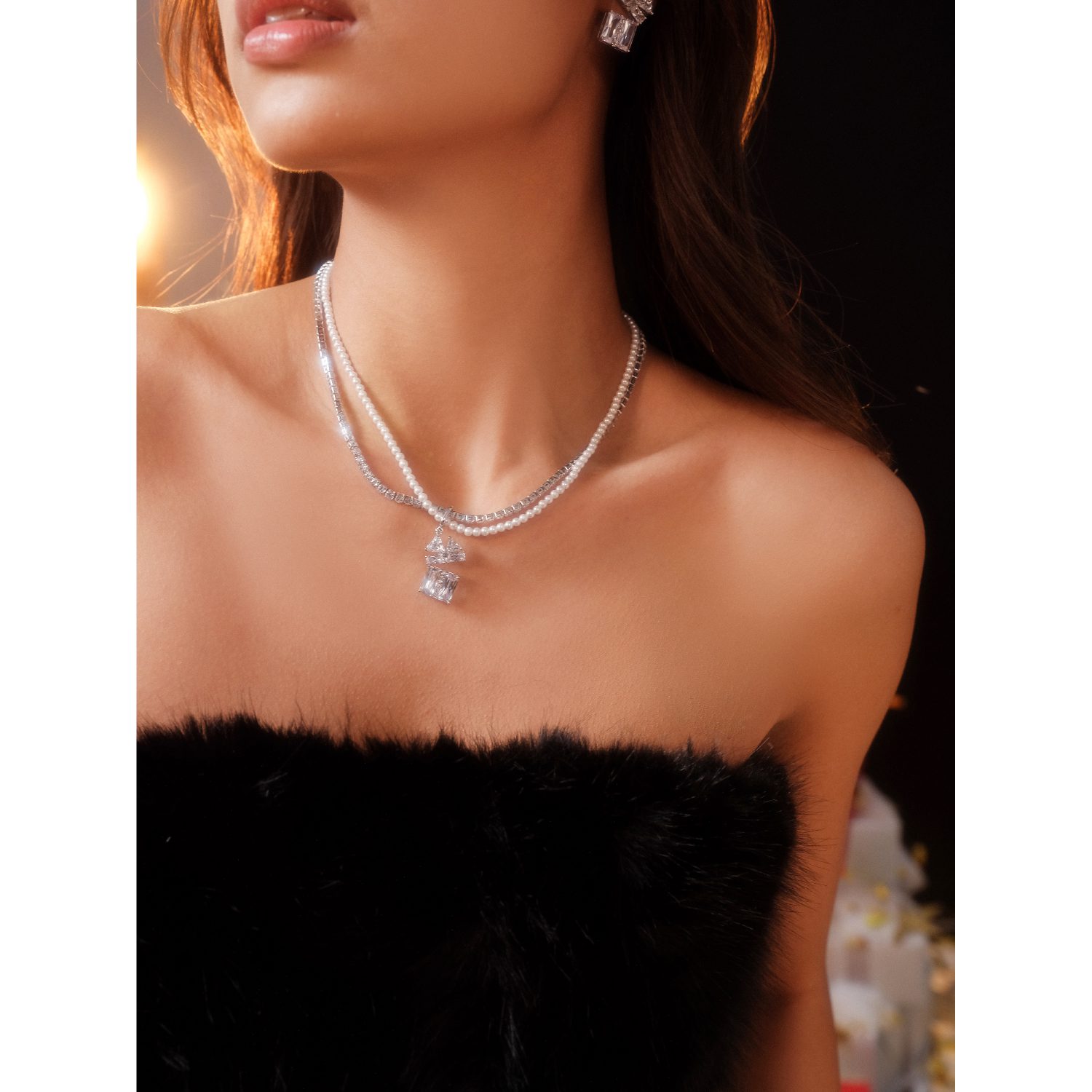 Materials: Rhodium plated copper, Cubic Zirconia, Pearl Bead