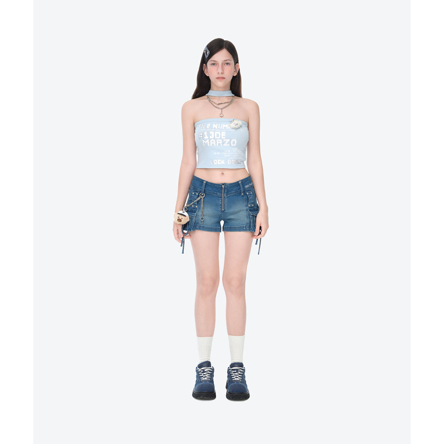 13DE MARZO V-Waist Sheriff Bear Jorts Navy Blue