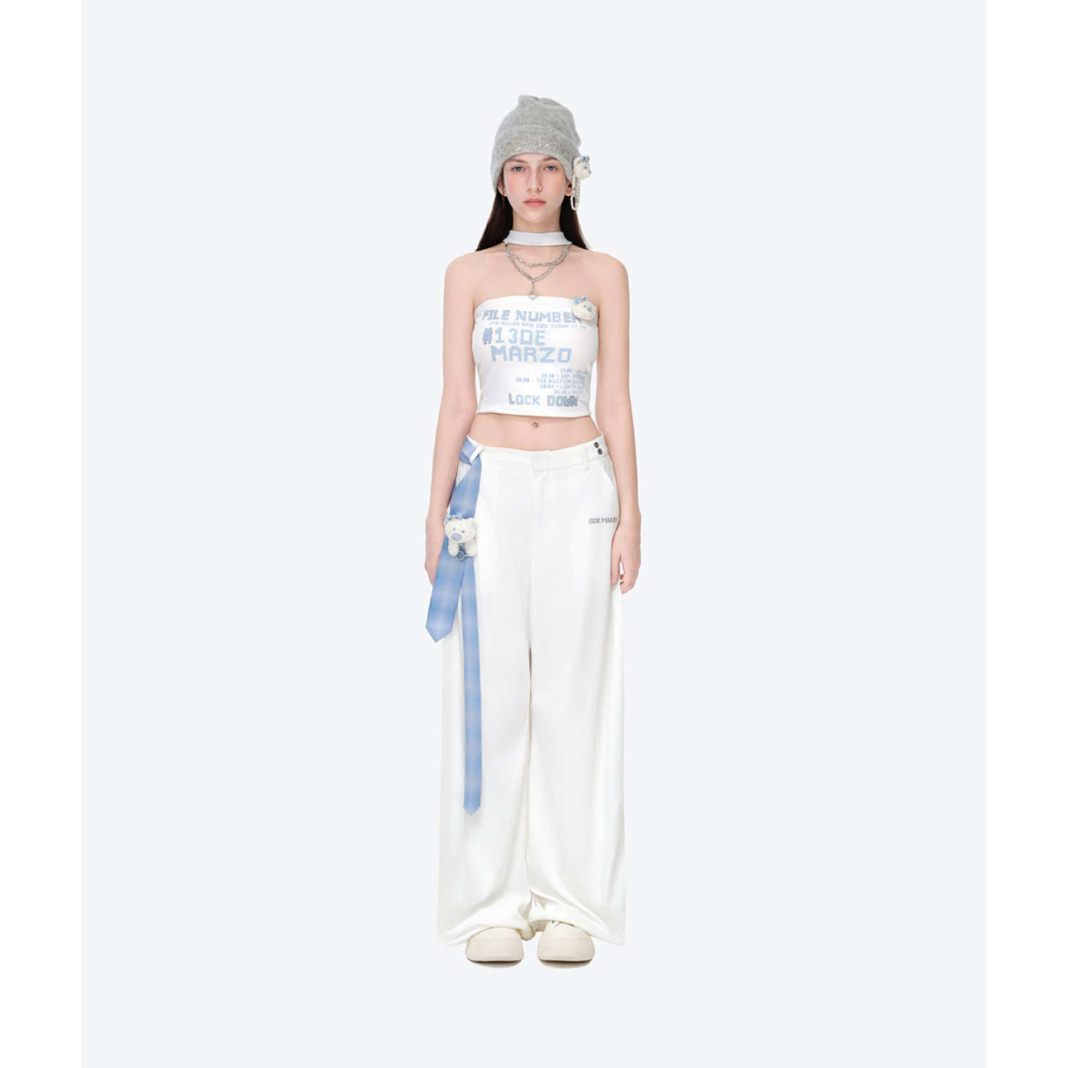 13DE MARZO Tie Belt Trousers White
