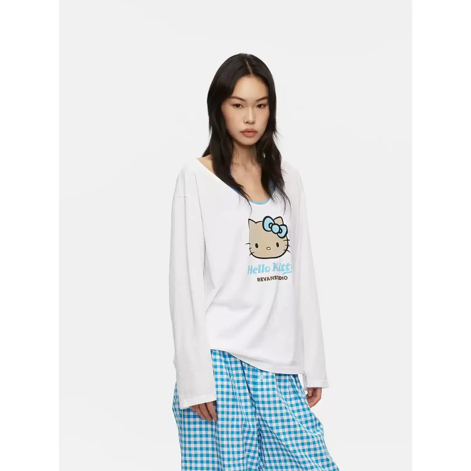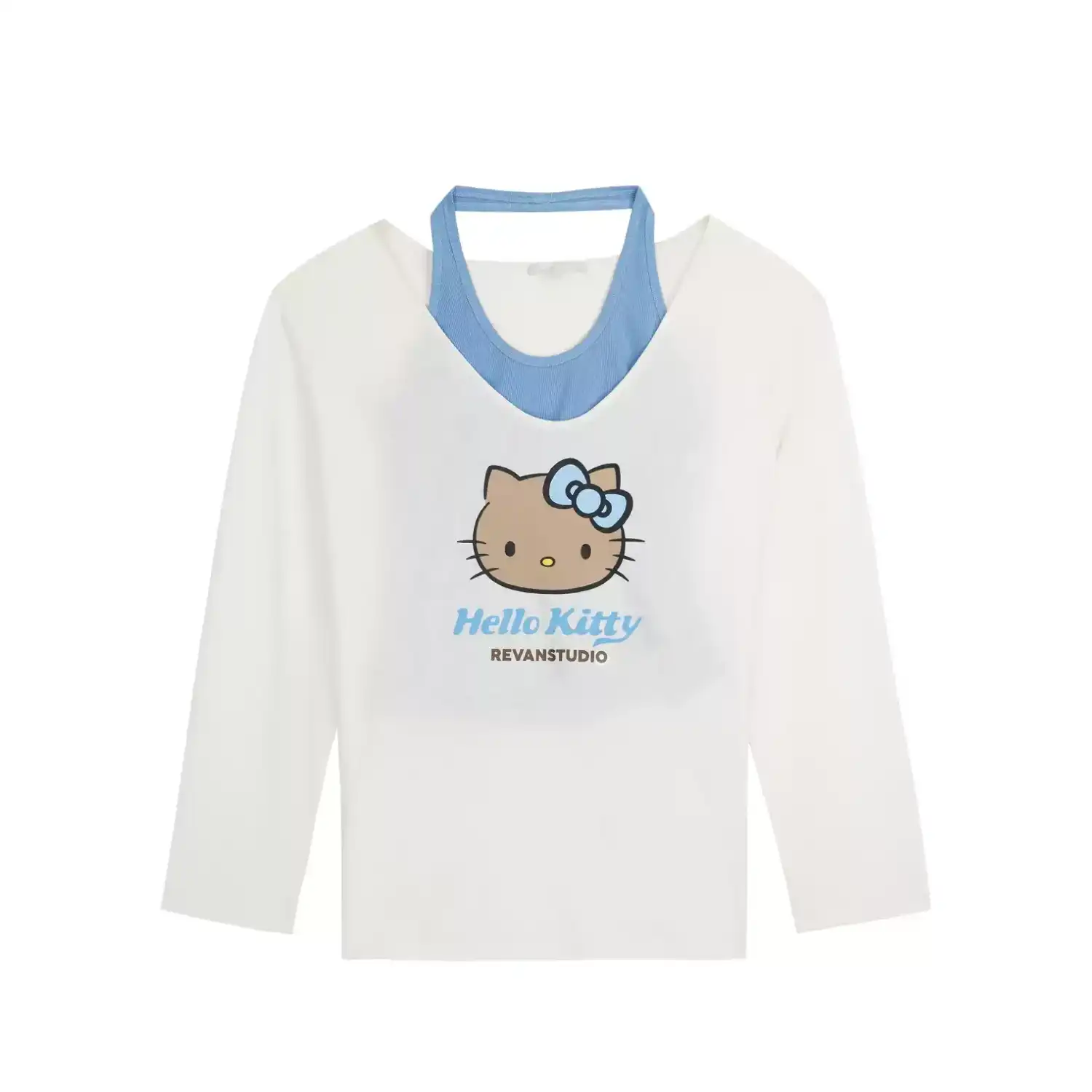 REVAN x Hello Kitty Layered Halter Tan Kitty Top White Blue