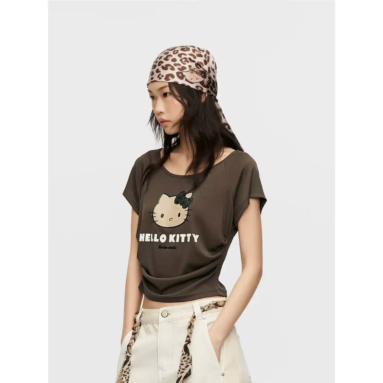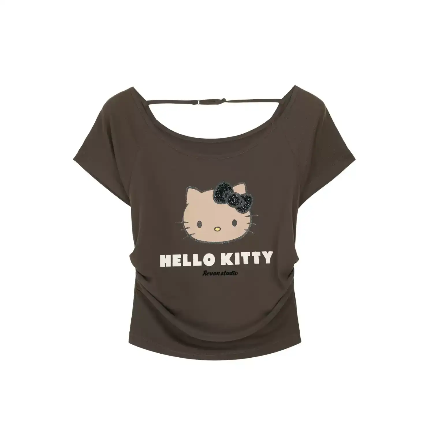 REVAN x Hello Kitty Tan Kitty Off-Shoulder Tee Brown