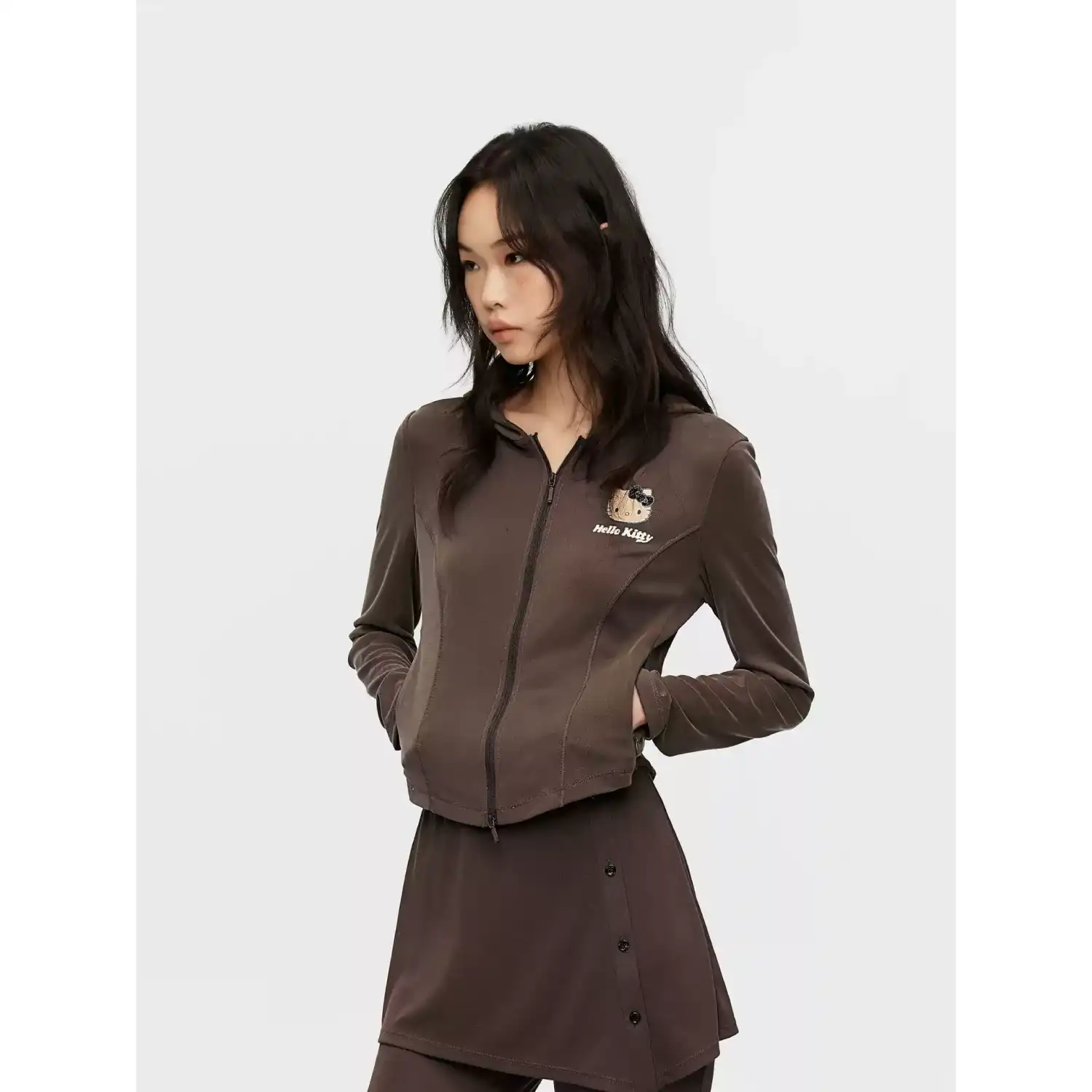REVAN x Hello Kitty Track Tan Kitty Cropped Hoodie Brown