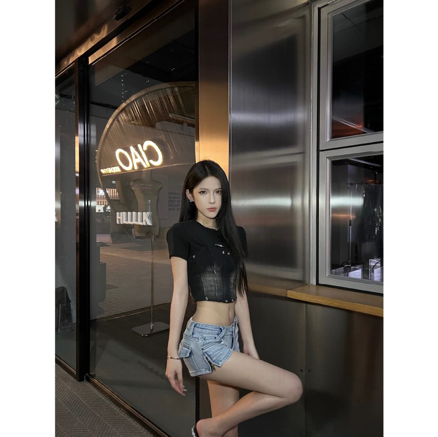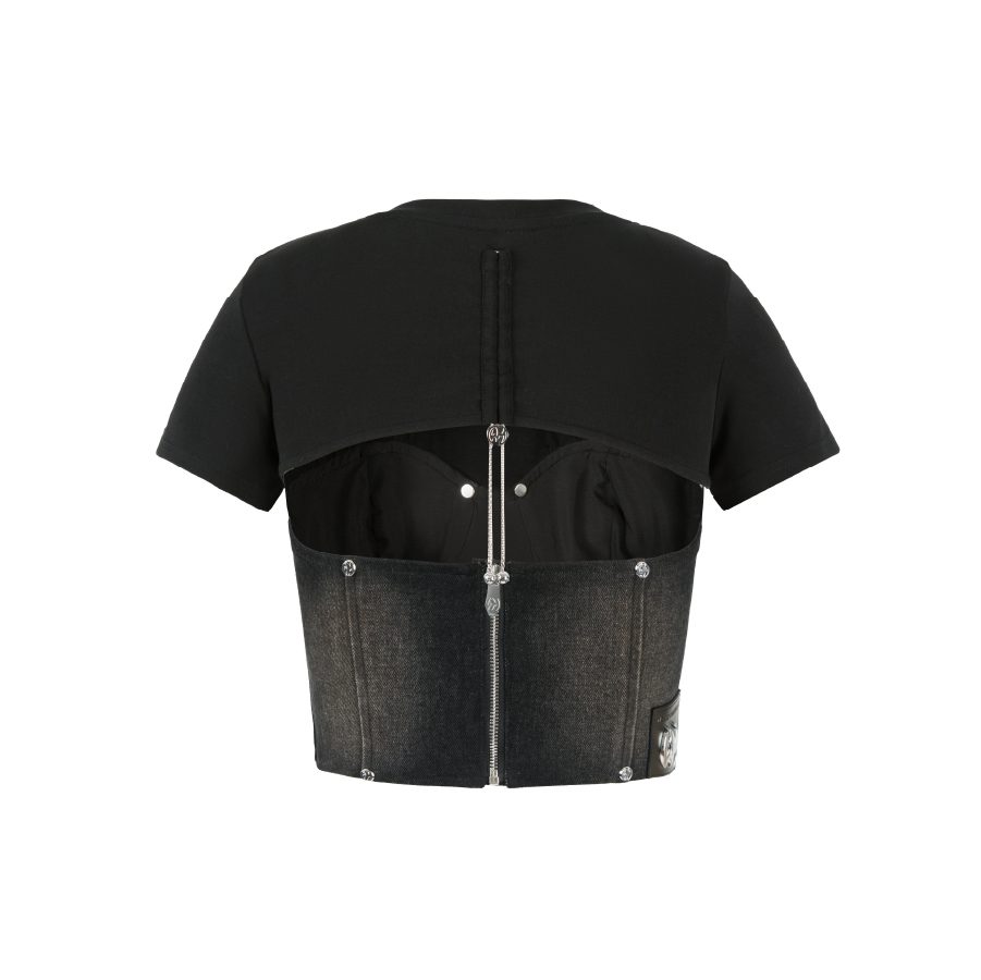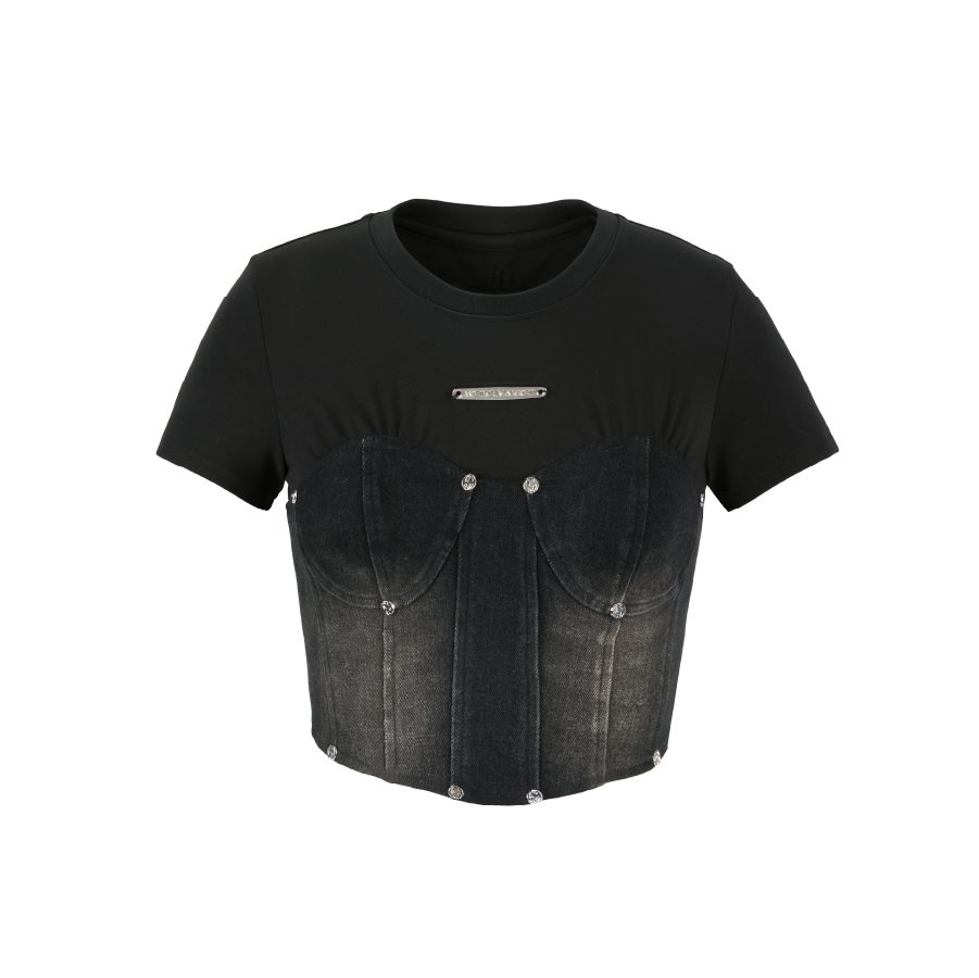 Weird Market Denim Patch Camisole Top Washed Black