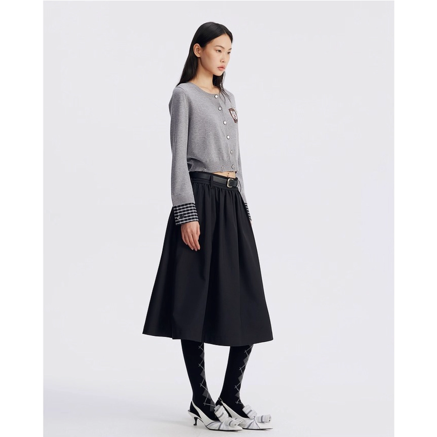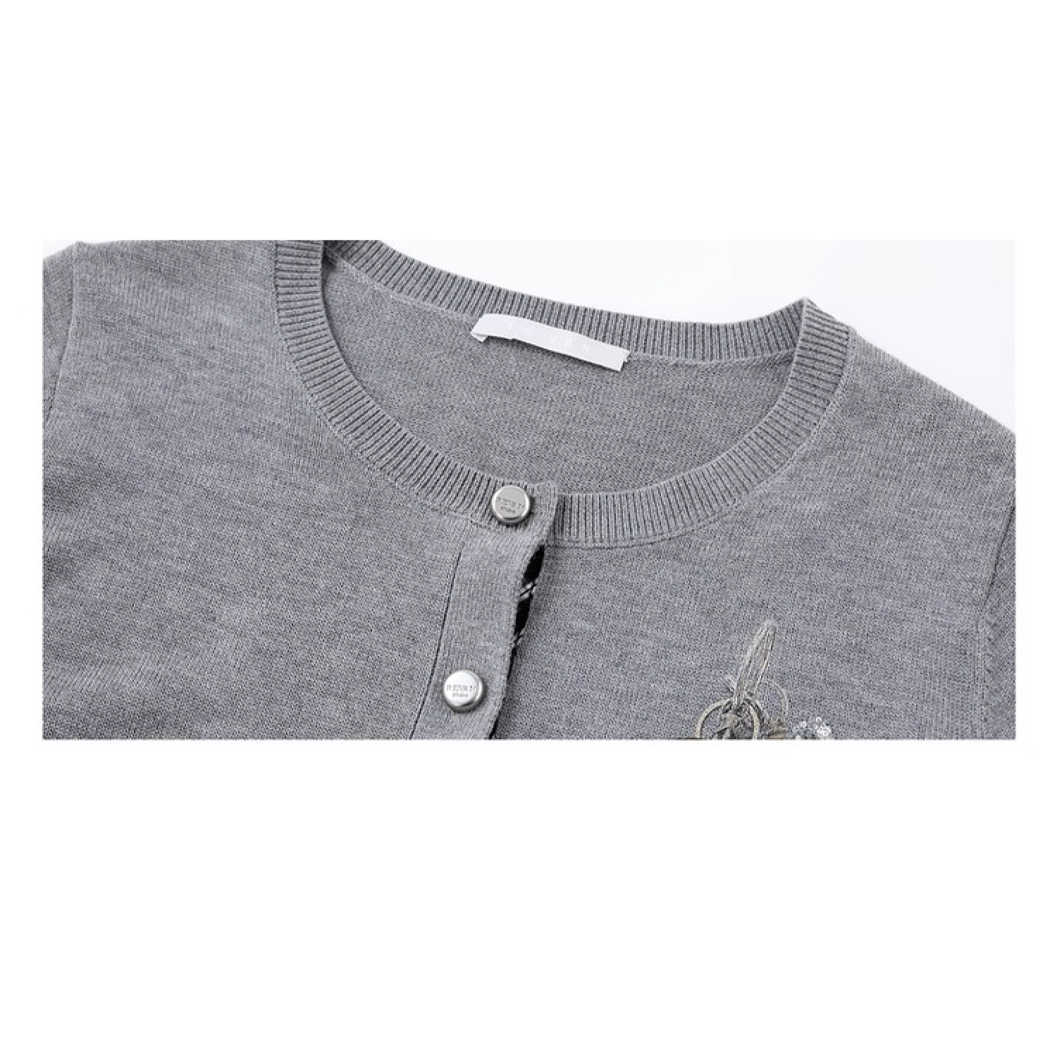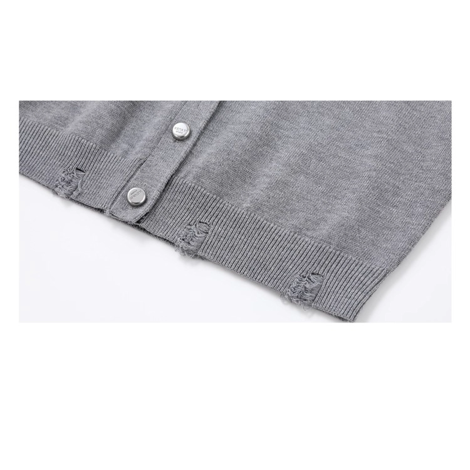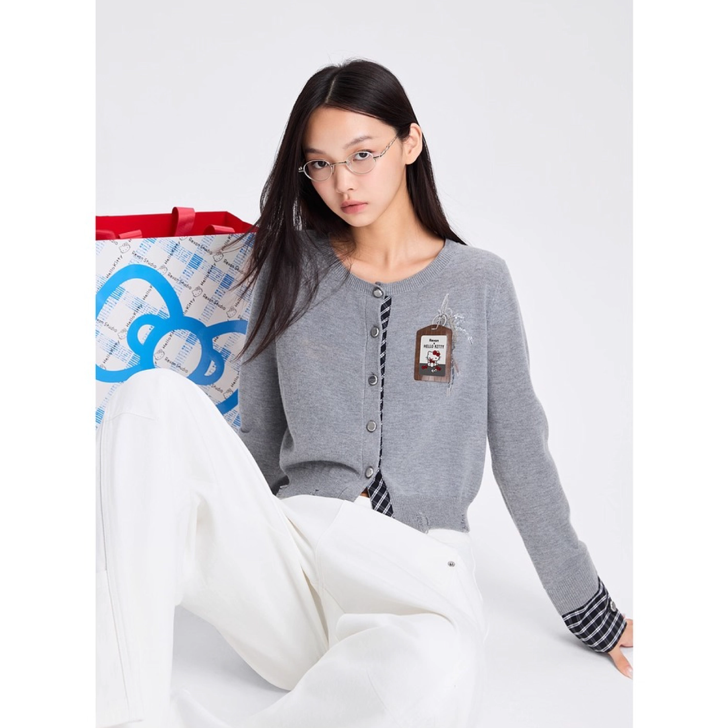 REVAN x Hello Kitty Badge Knit Cropped Cardigan Grey