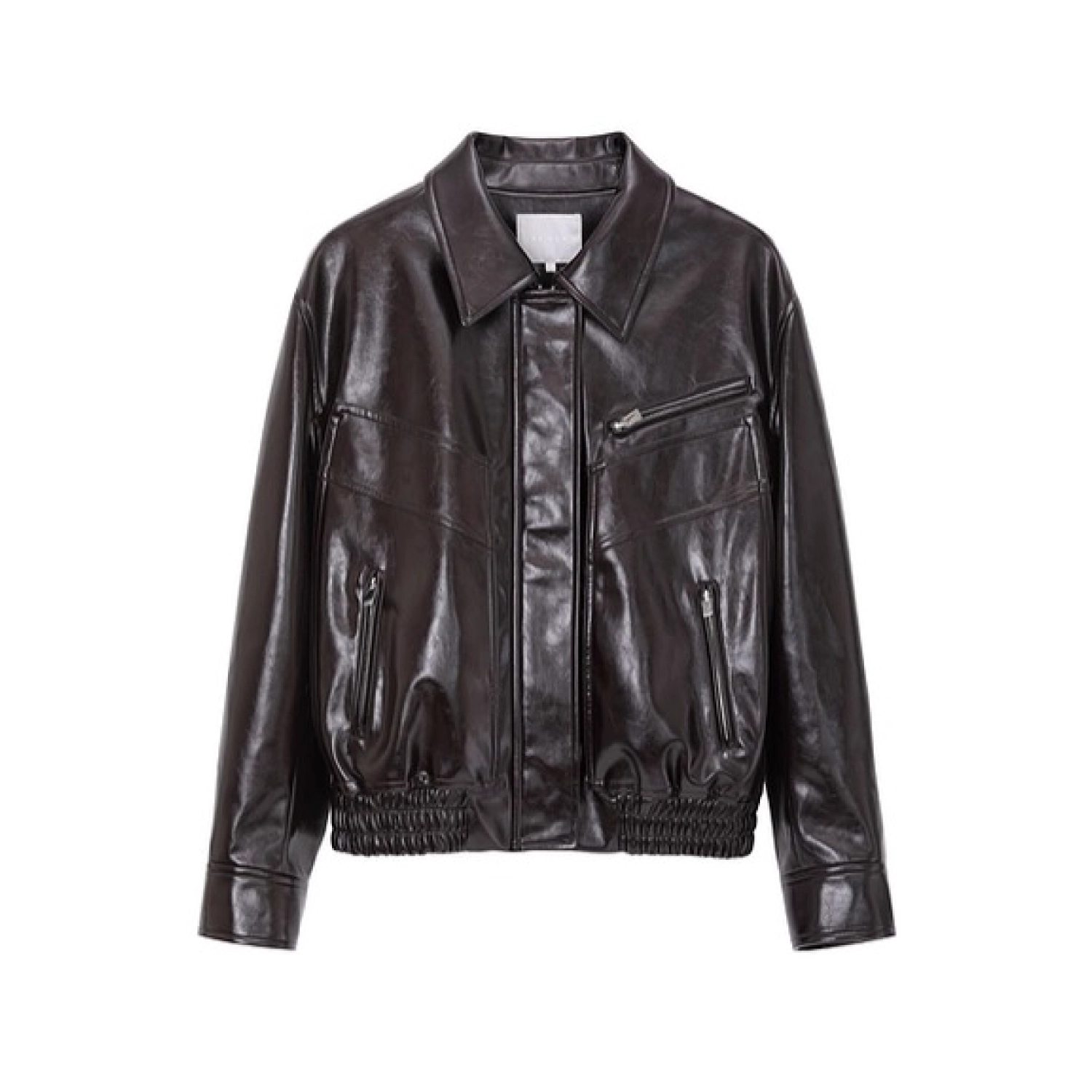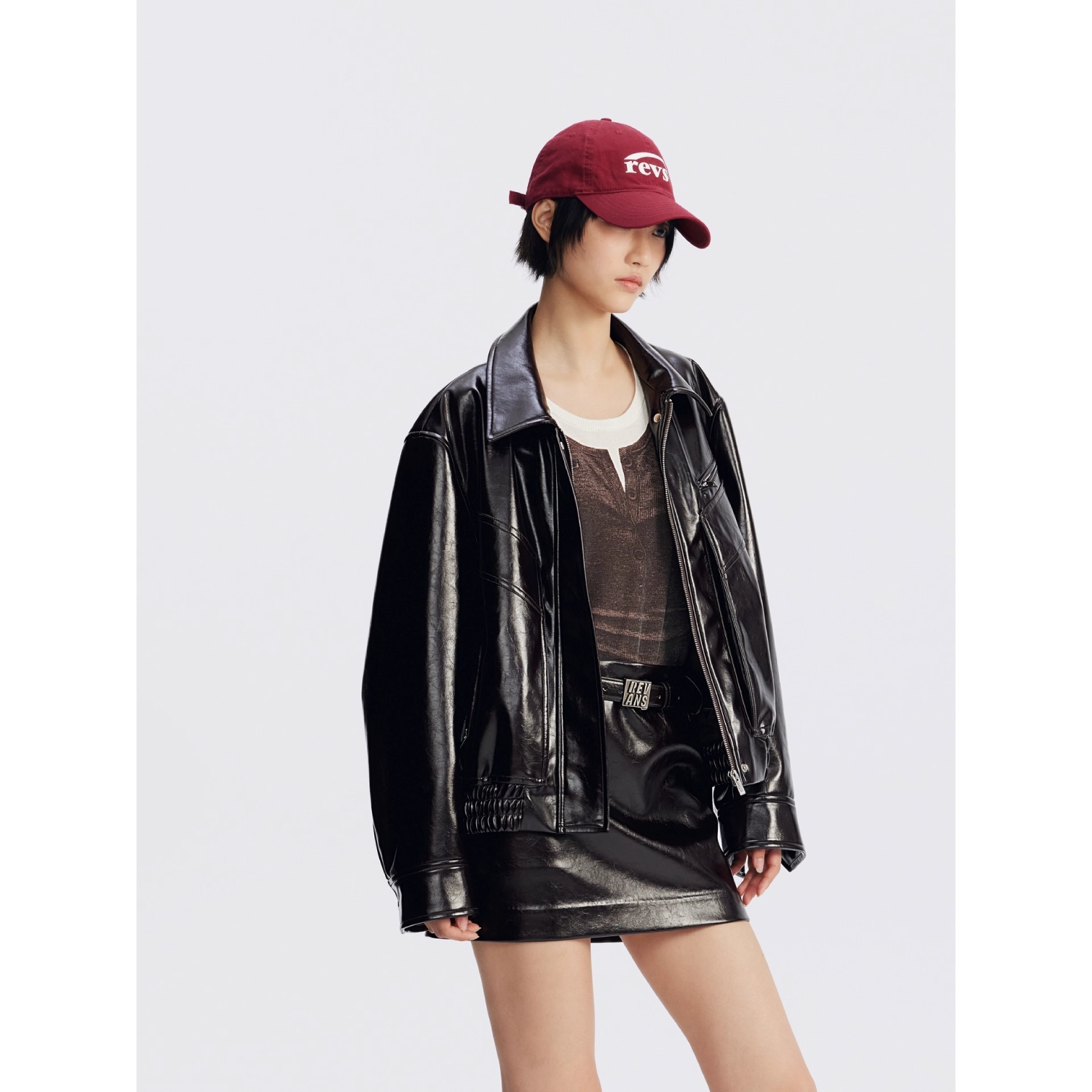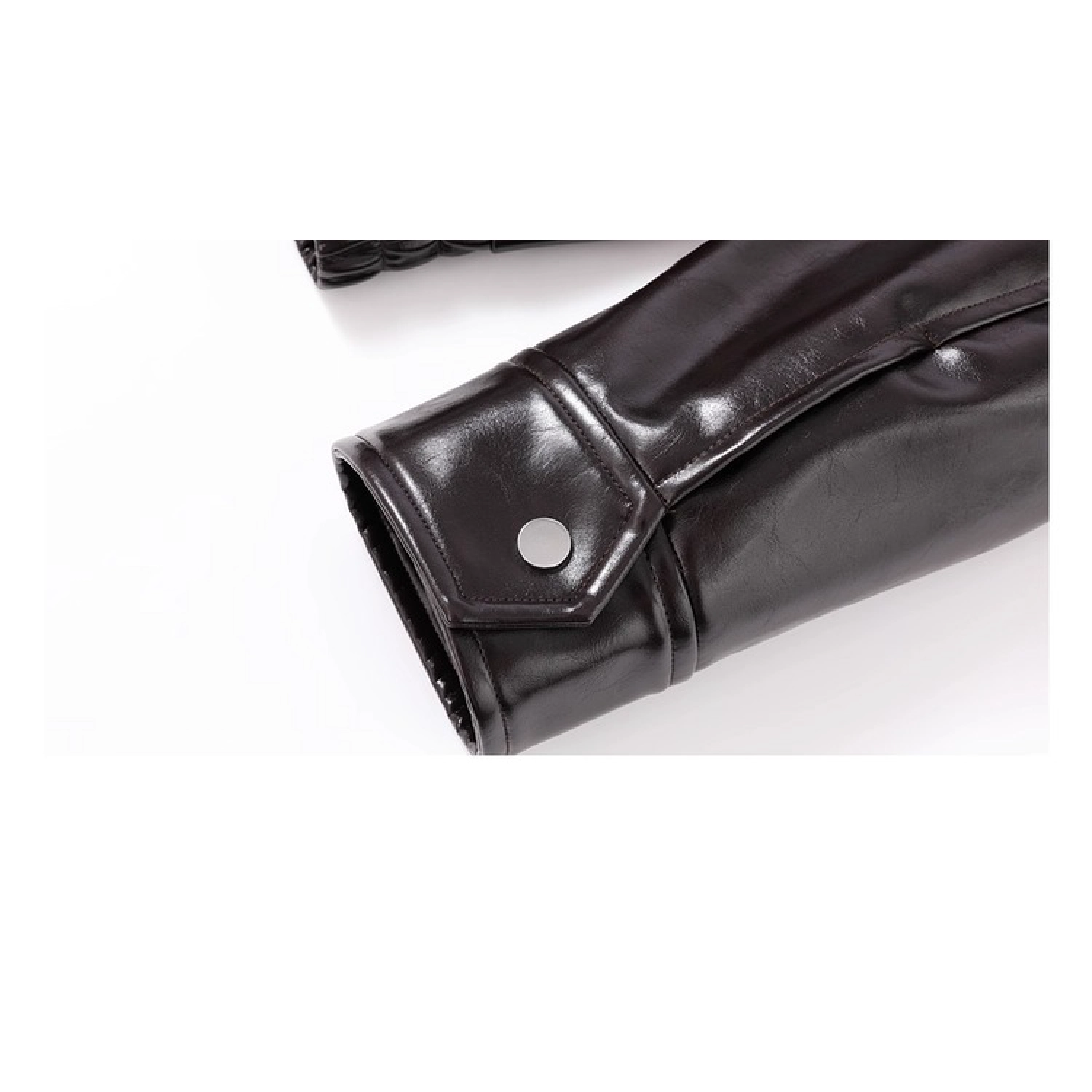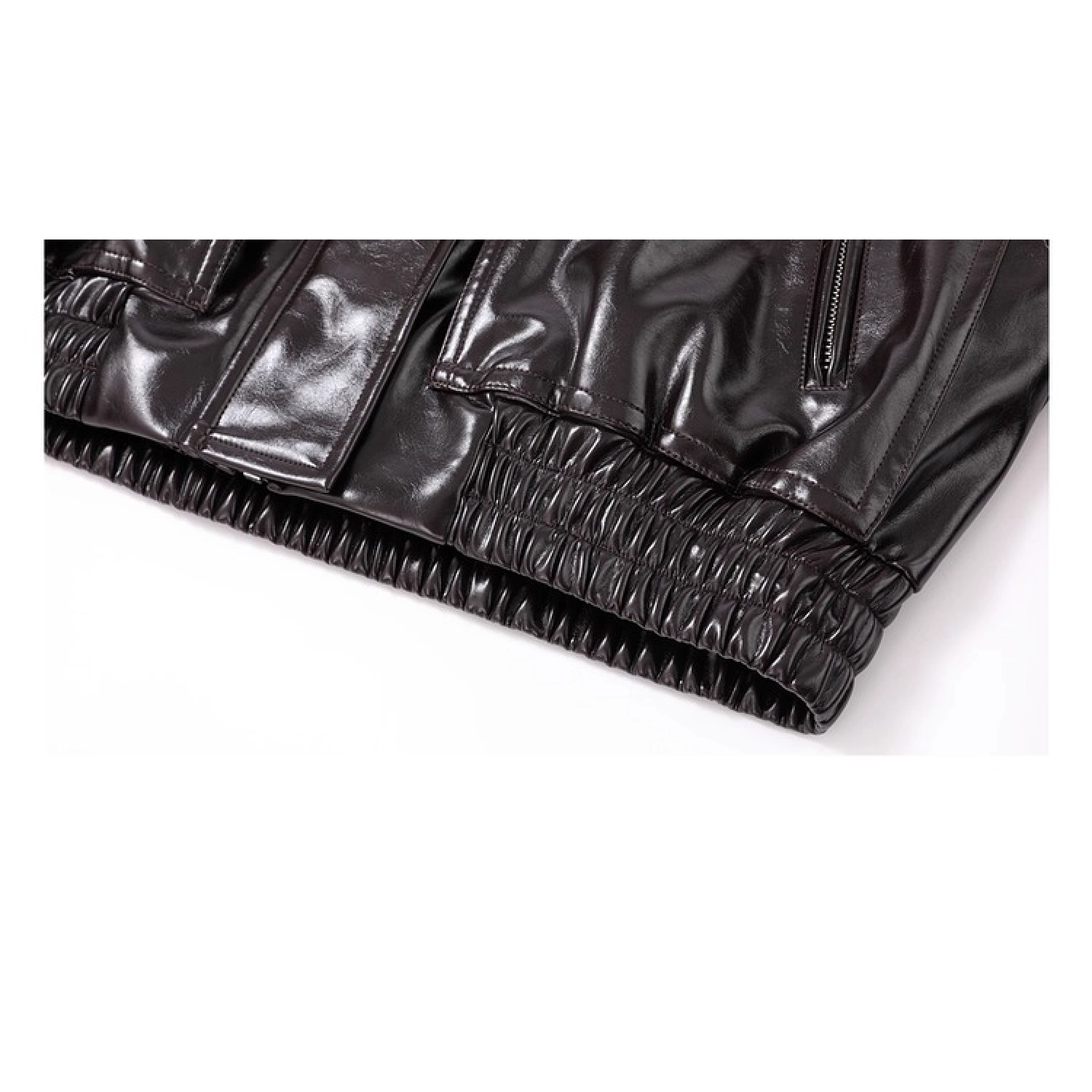 REVAN Glossy PU Leather Jacket with Shearling Lining Black Red