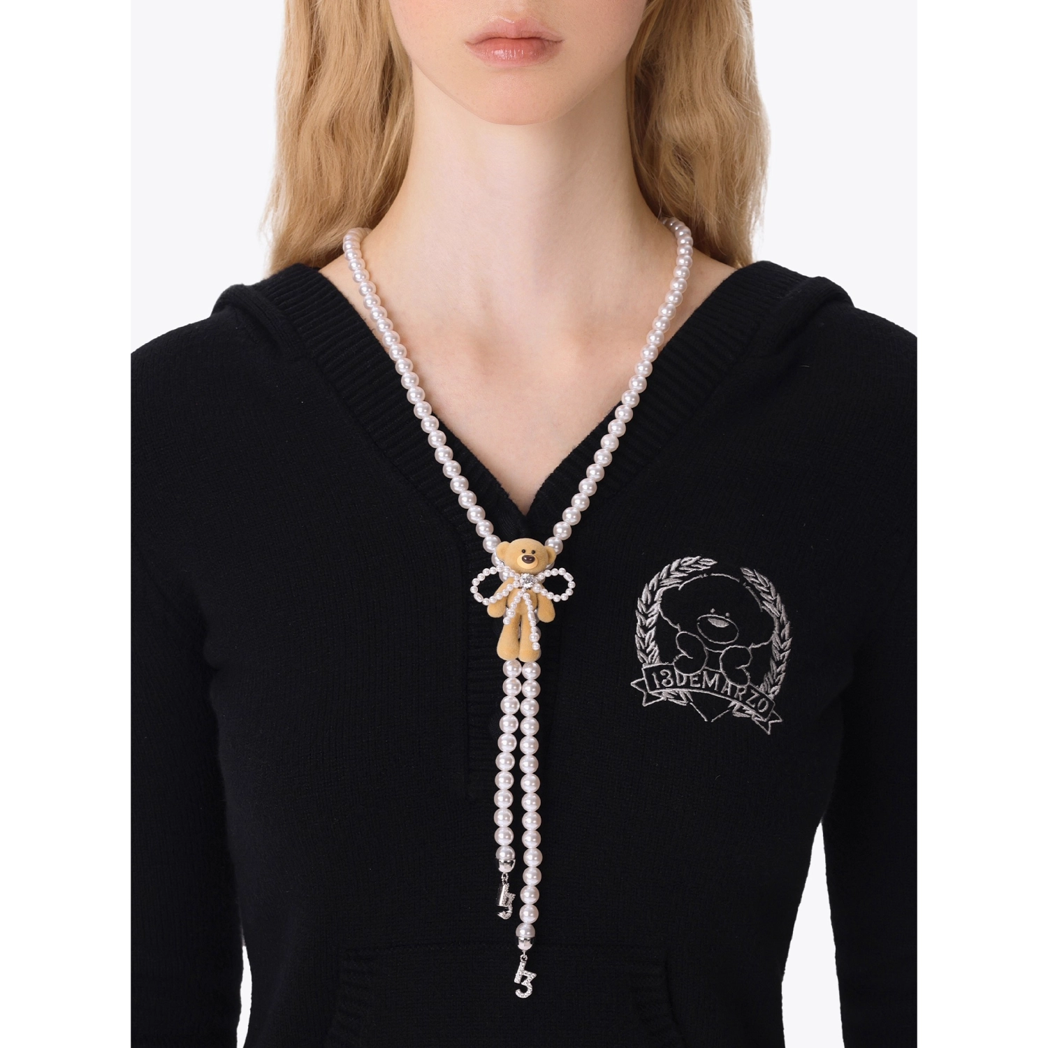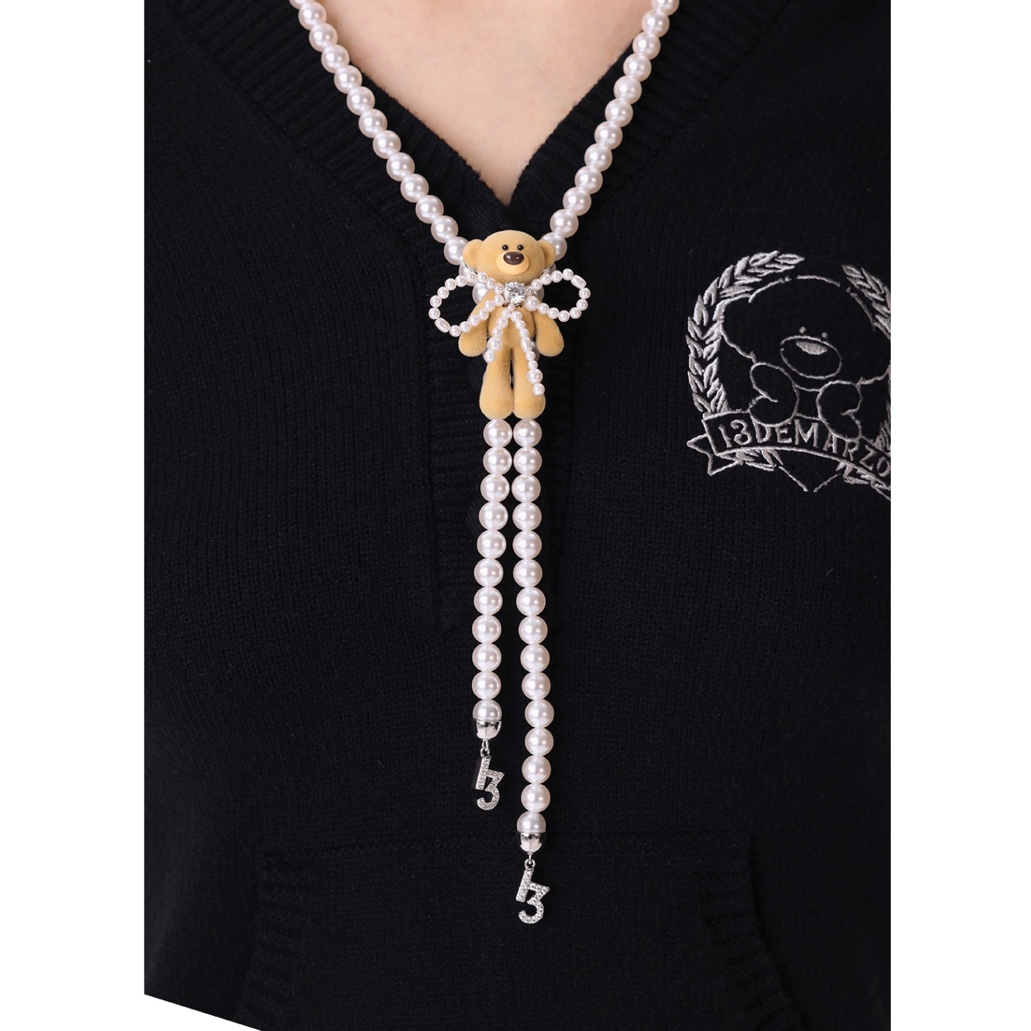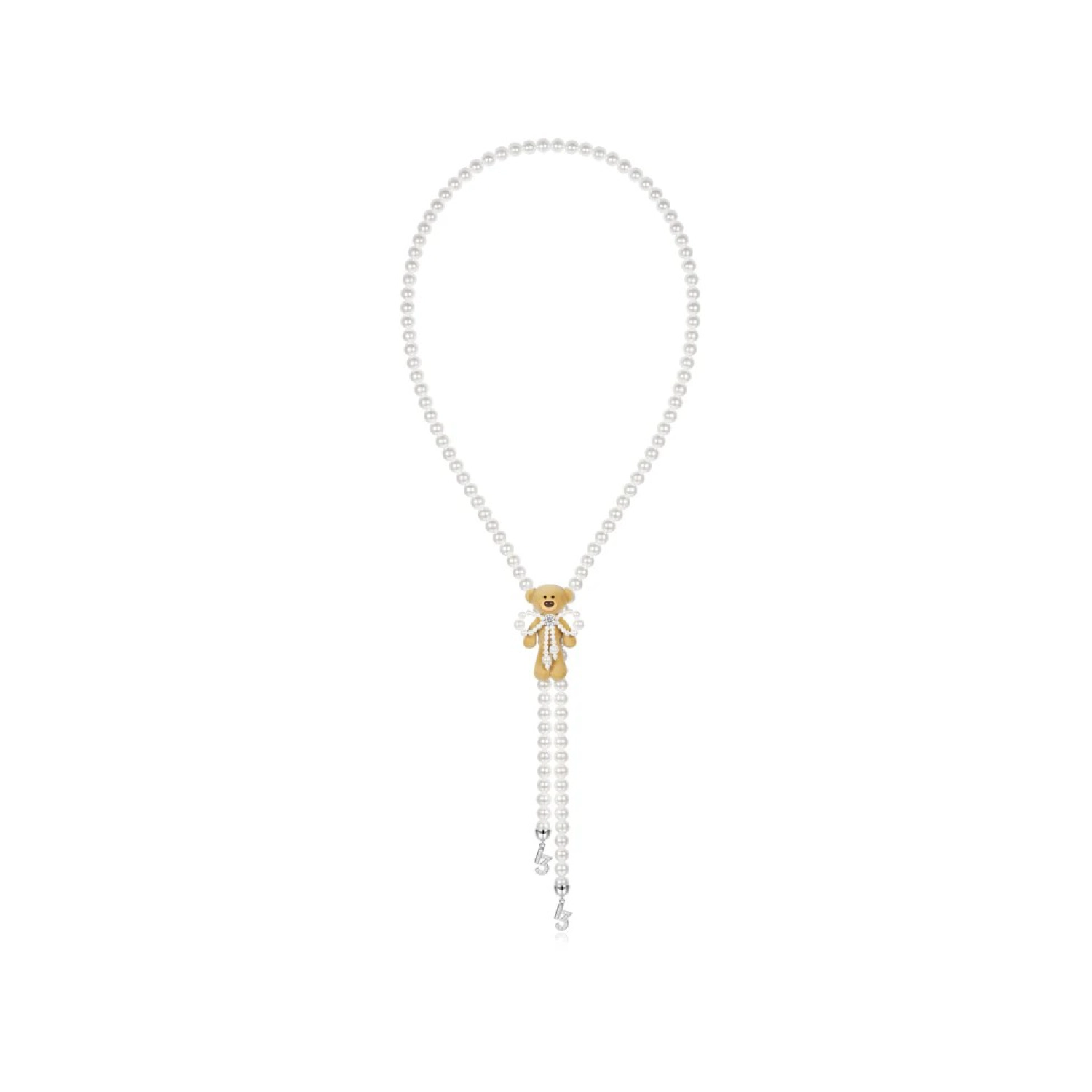 13DE MARZO Bear Pearl Bow Necklace Silver