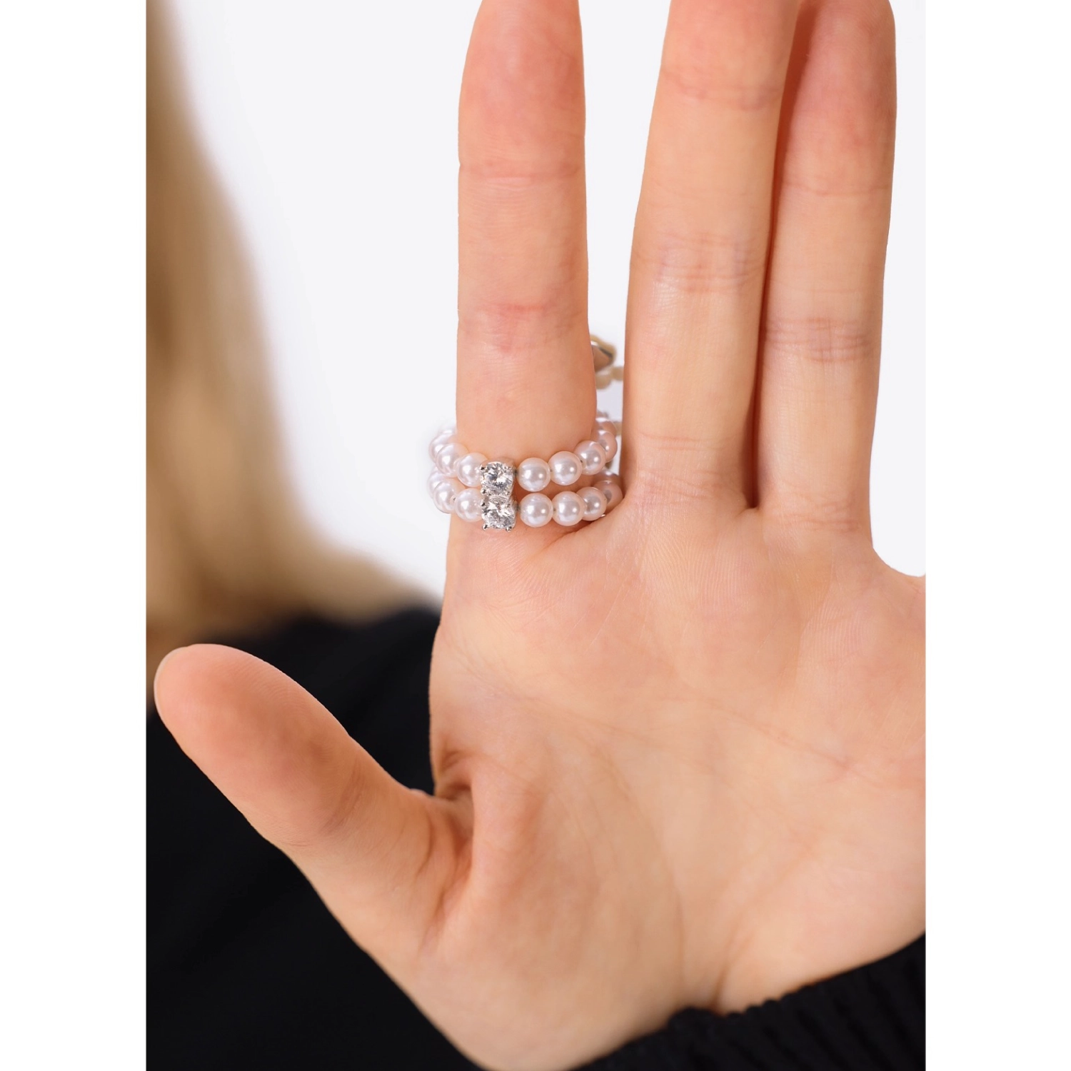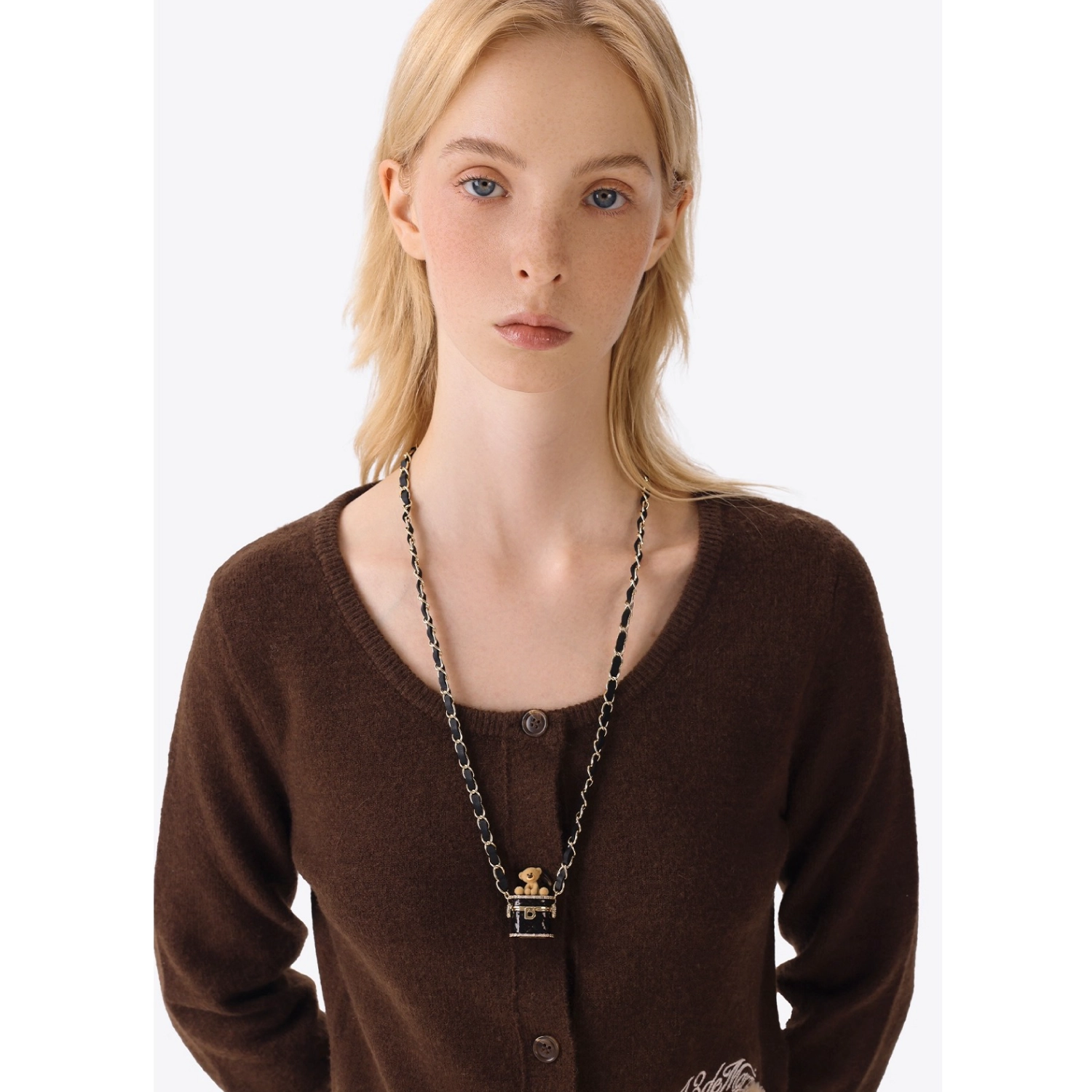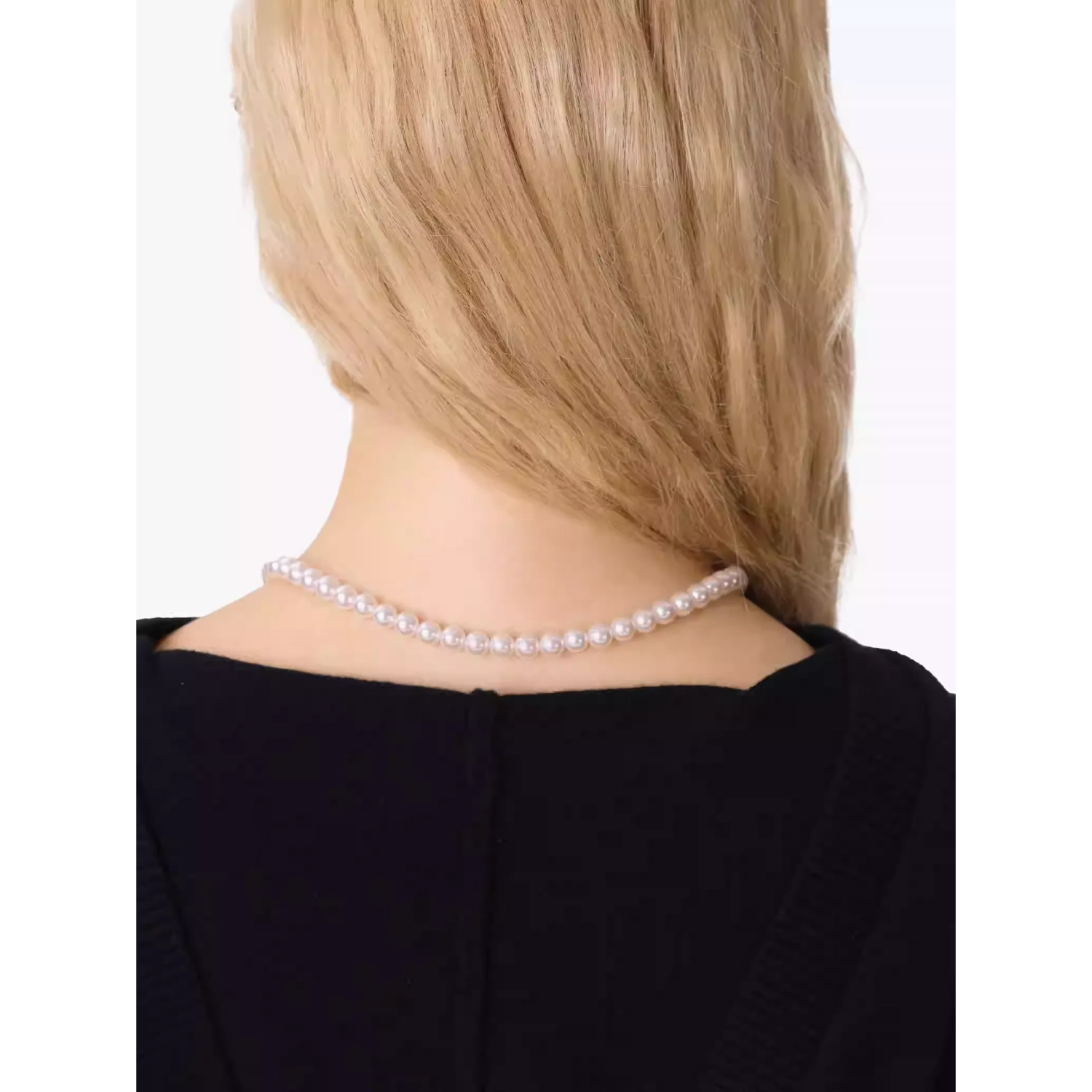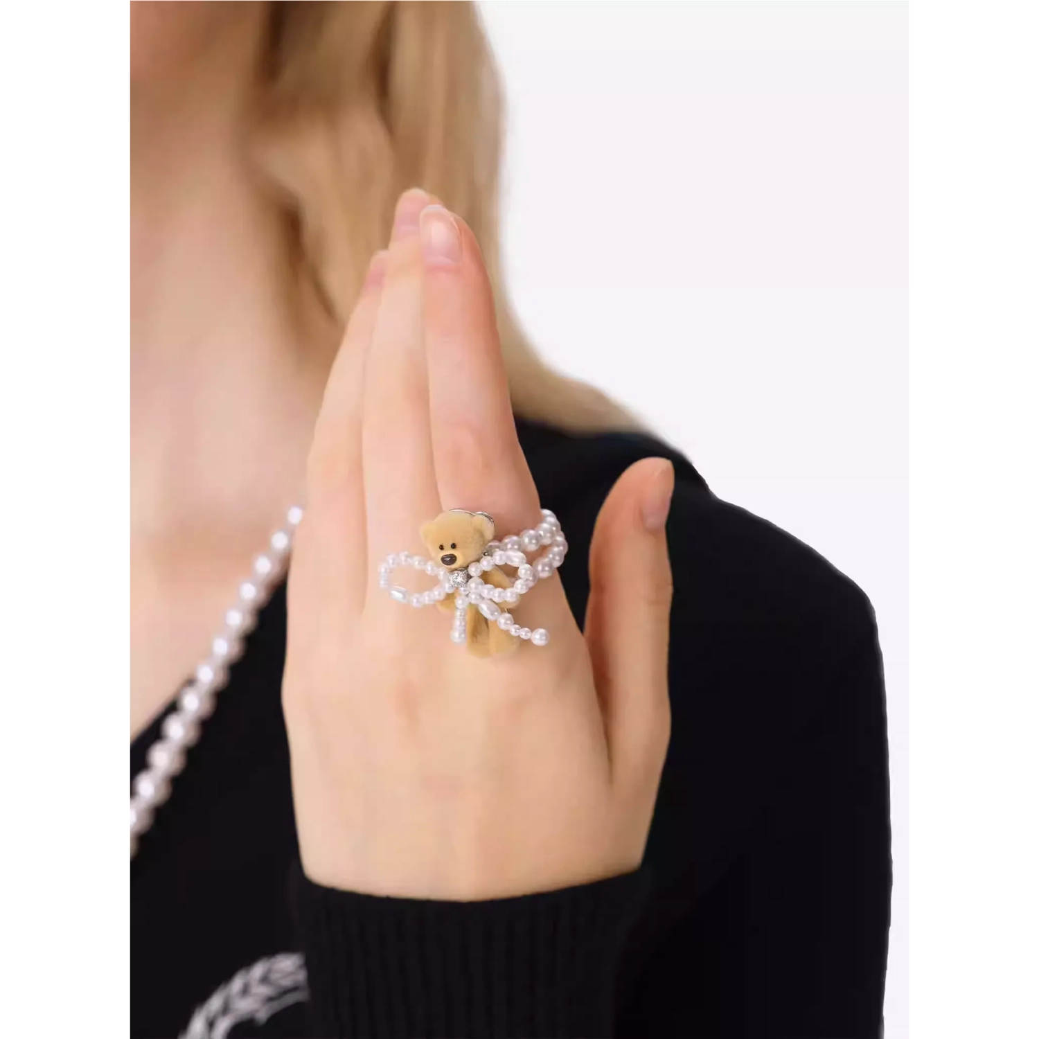13DE MARZO Bear Pearl Bow Necklace Silver