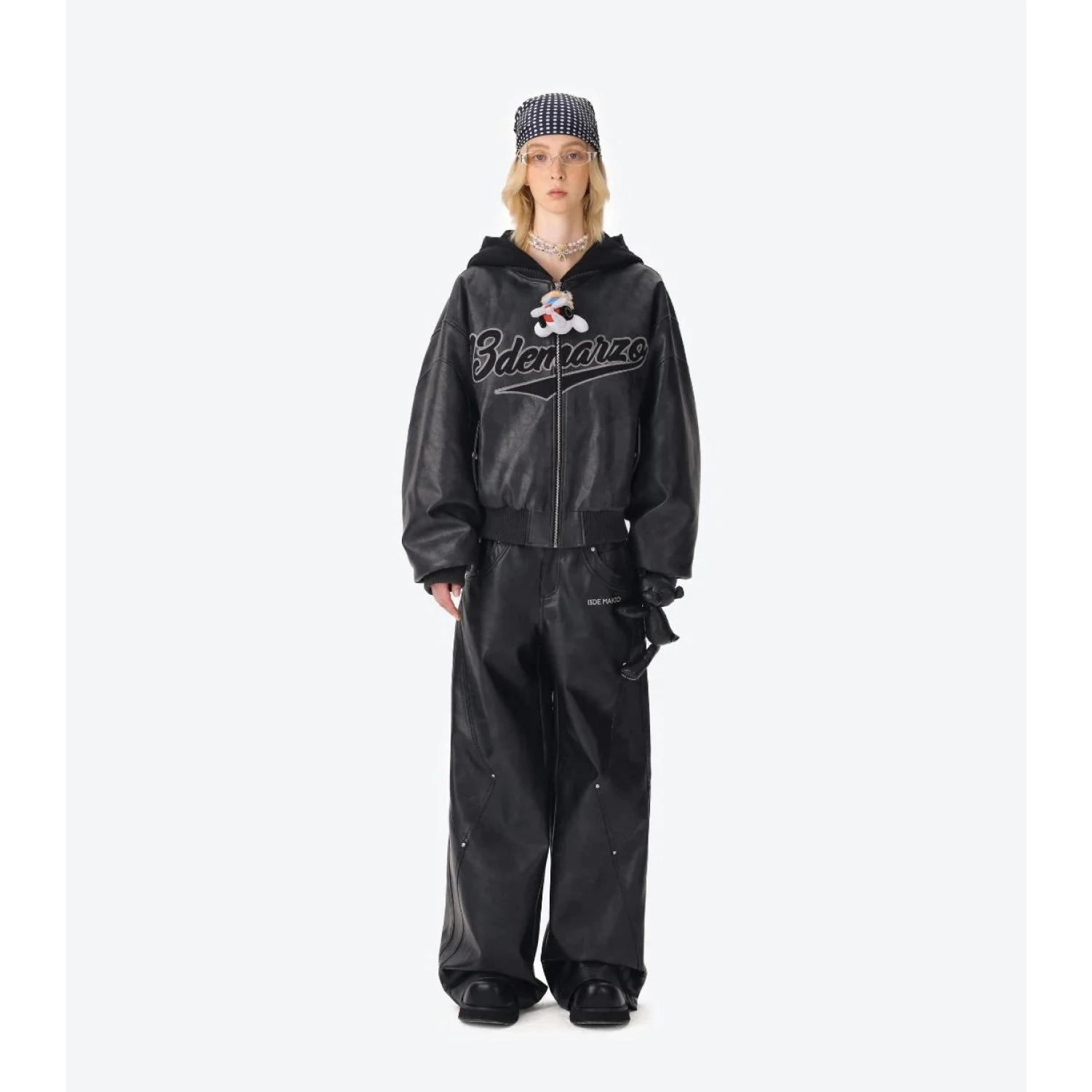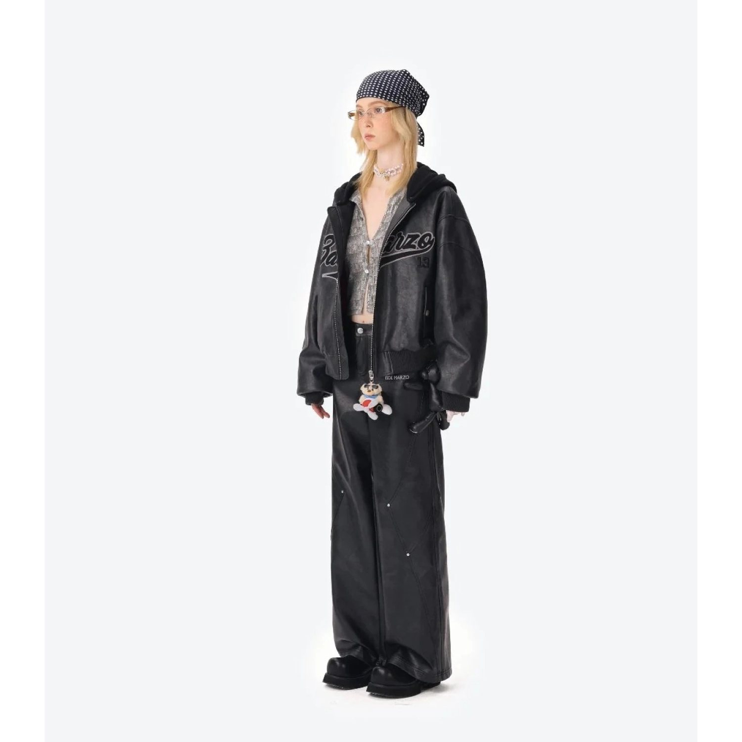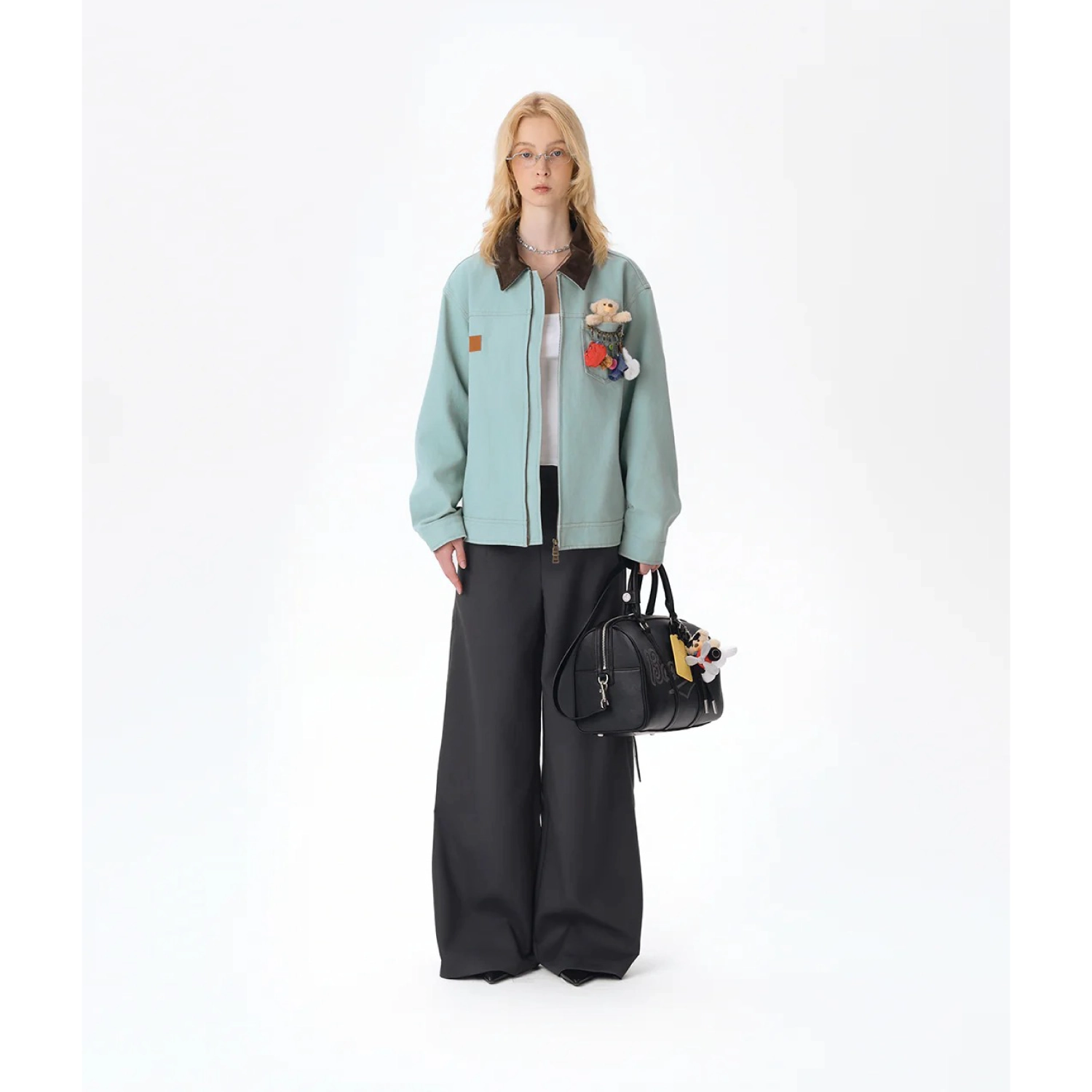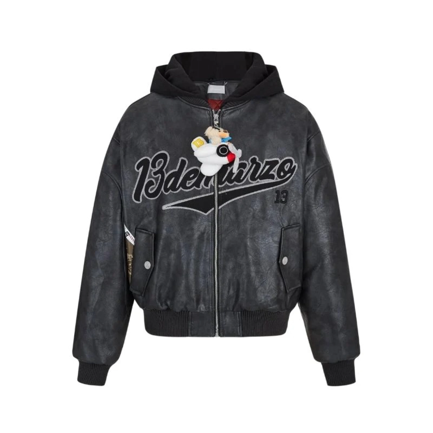 13DE MARZO Pilot Bear Vintage Jacket Black