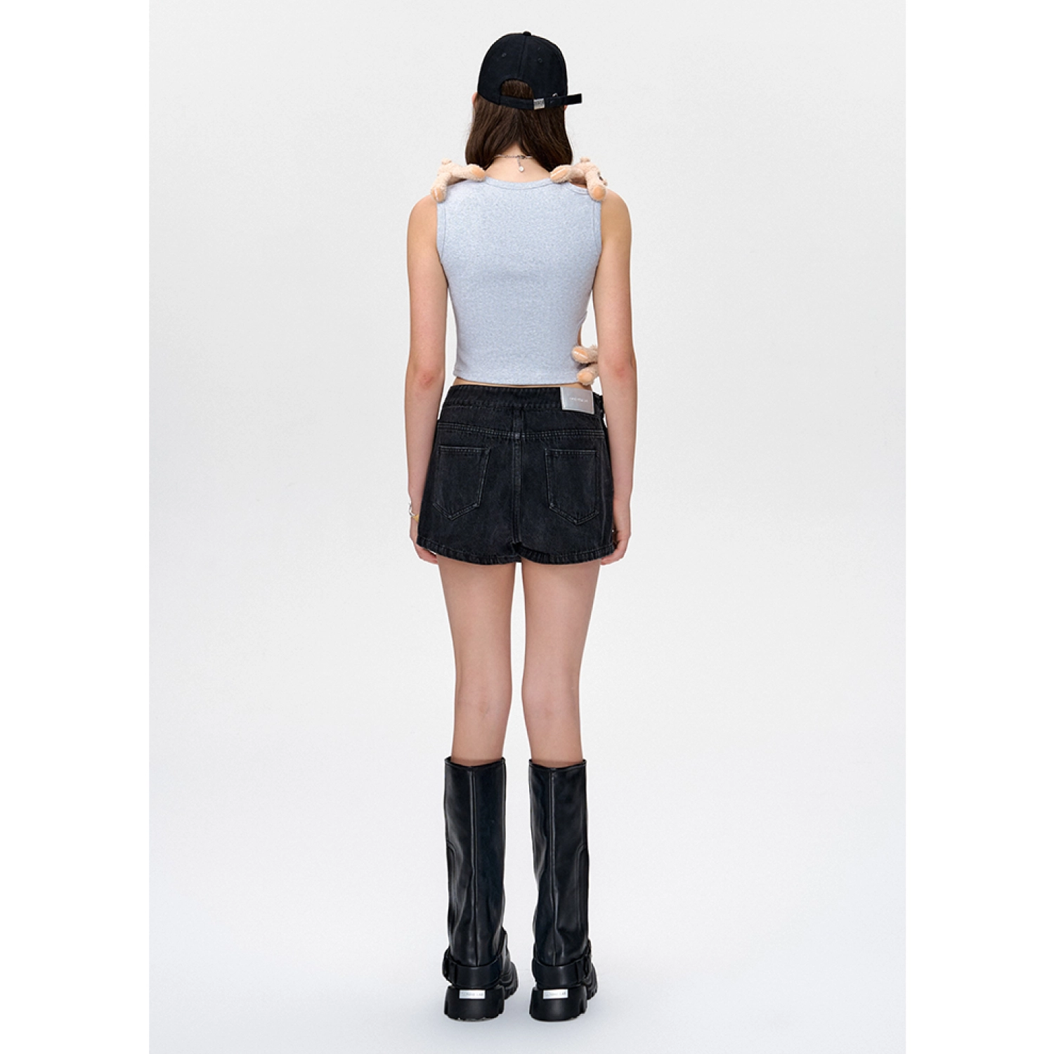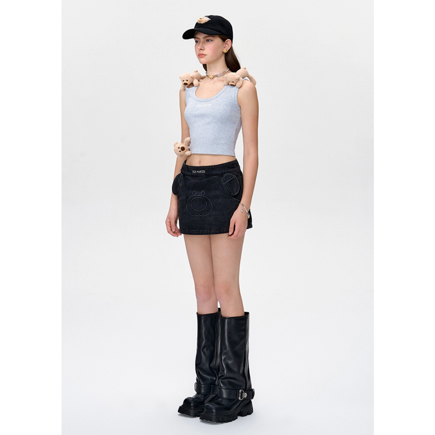13DE MARZO Bear Lacy Denim Skirt Blue